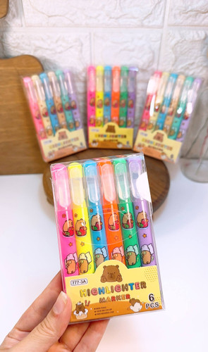 هایلایتر پک ۶ عددی حیوانات استیکر دار ۳۹۶